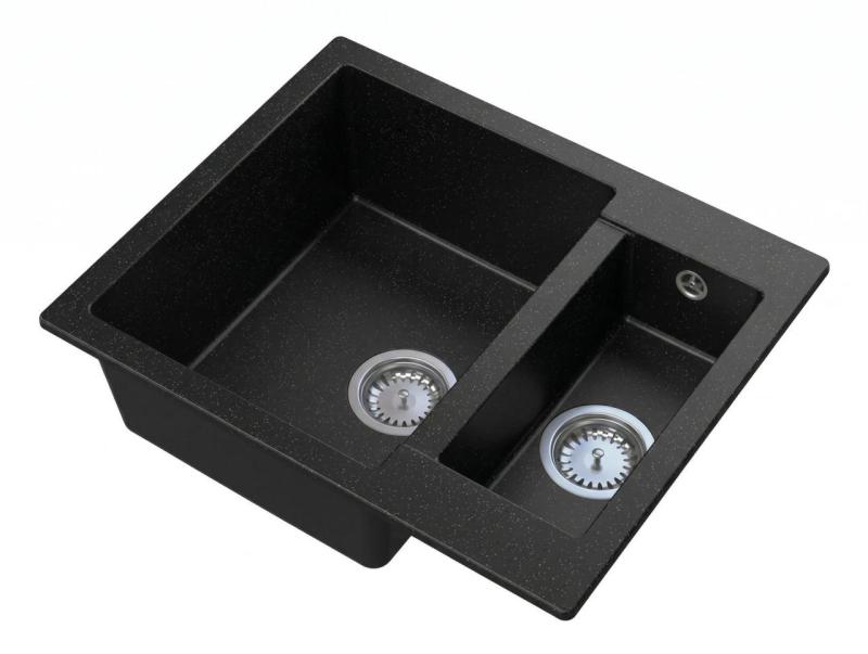 Graniteland Adda Granite Black Bluestone Look 1.5 Sink Top Mount 600x495mm with Stainless Steel Plug 1208970619