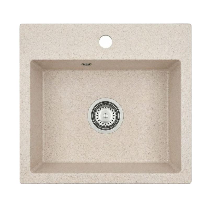 Graniteland Nera Granite Sink 45x42 cm Beige Top Mount with Tap Hole Bank and Stainless Steel Plug 1208971434