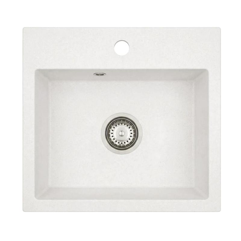 Graniteland Nera Granite Sink 45x42 cm White Top Mount with Faucet Hole Bank and Stainless Steel Plug 1208971435