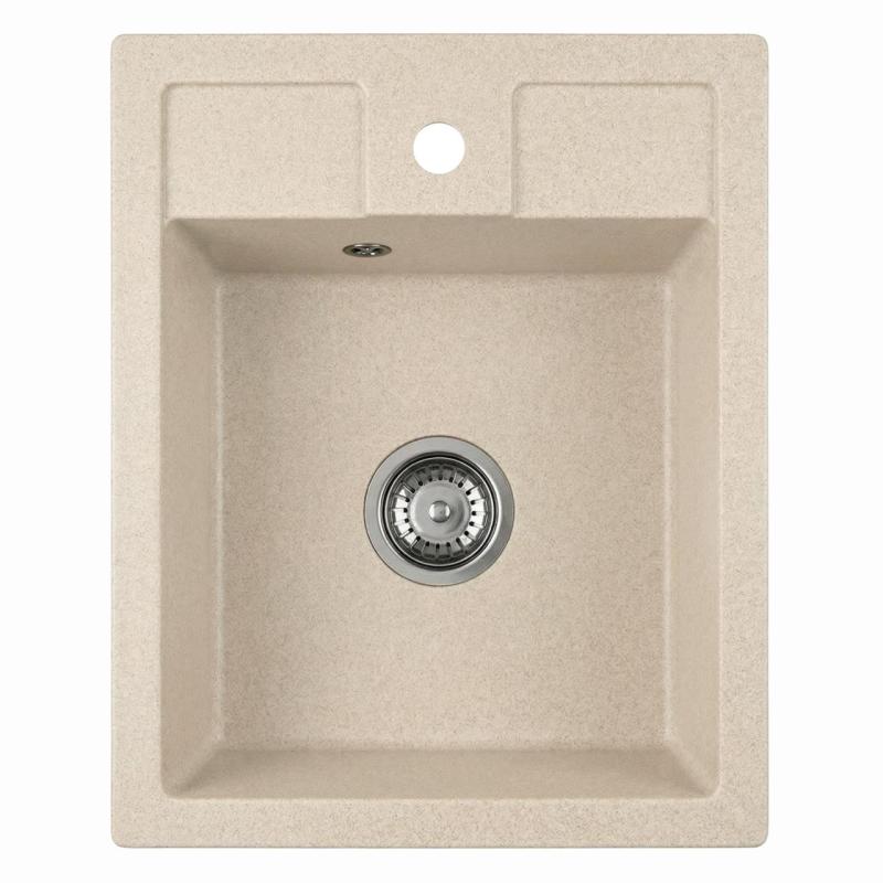 Graniteland Prest Granite beige sink Tapwing with faucet hole bank top mount 400x500mm with Stainless Steel Plug 1208971422