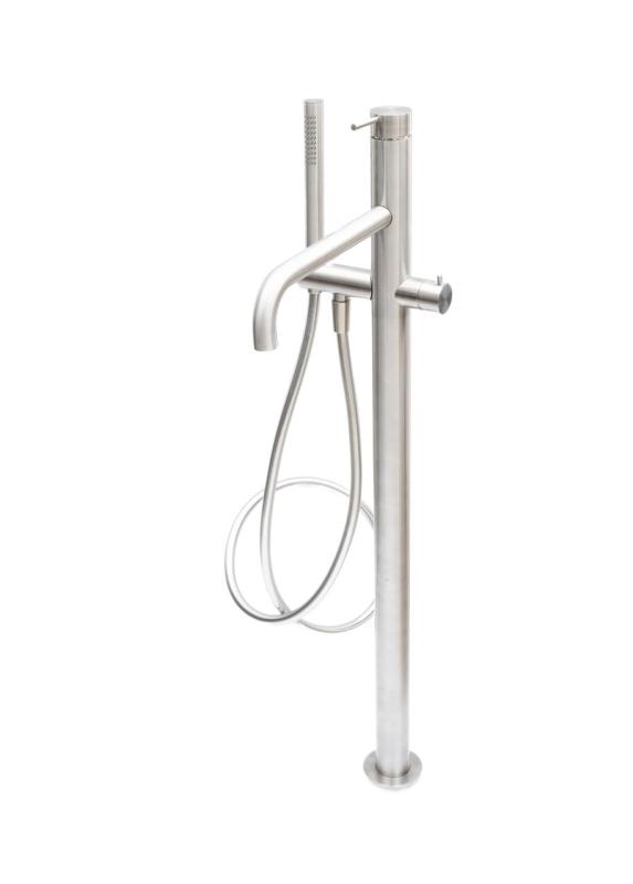S svojo višino 885 mm in izlivom 250 mm ta samostojna kopalniška pipa ponuja optimalno udobje pri polnjenju kadi. Vgrajena ročna tuš glava s fiksnim držalom in preklopnim mehanizmom pipo naredi še posebej praktično za izpiranje ali čiščenje. Pipa se namesti na tla in je posebej zasnovana za samostojne kopalne kadi.