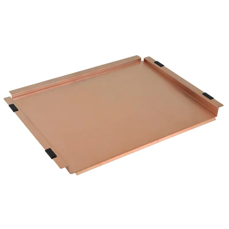 Odkrijte bakreno premično odcejalno pladnjoPure.Sink Exclusivo – popolno združevanje funkcionalnosti in sloga za vašo kuhinjo. Ta elegantna odcejalna pladnja, posebej zasnovana za pomivalno korito z modelno številko PEXTRAY-62, ni le praktična dopolnitev, temveč tudi prava paša za oči.