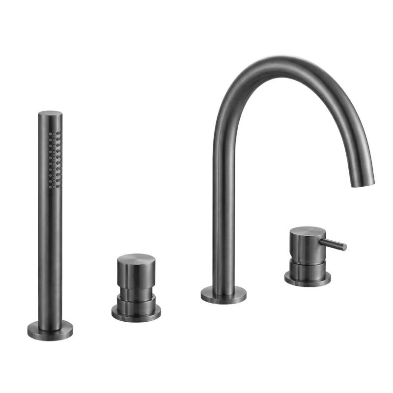 Waterevolution Flow 4-luknjasta kopalna pipa za montažo na rob kadi v celoti PVD Gun Metal T138GME